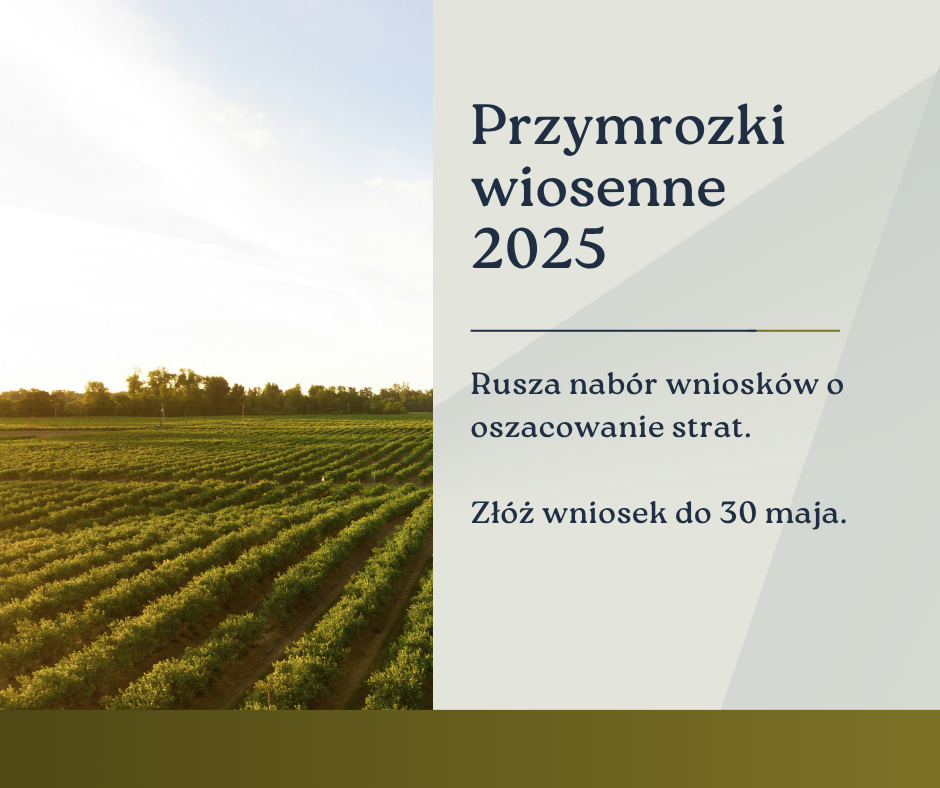 W związku z wystąpieniem niekorzystnego zjawiska atmosferycznego – przymrozków wiosennych na terenie gminy Tarczyn w dniach 6, 7, 9, 10 i 27 kwietnia 2025 r., rolnicy mogą składać wnioski o oszacowanie strat w uprawach rolnych i sadowniczych.