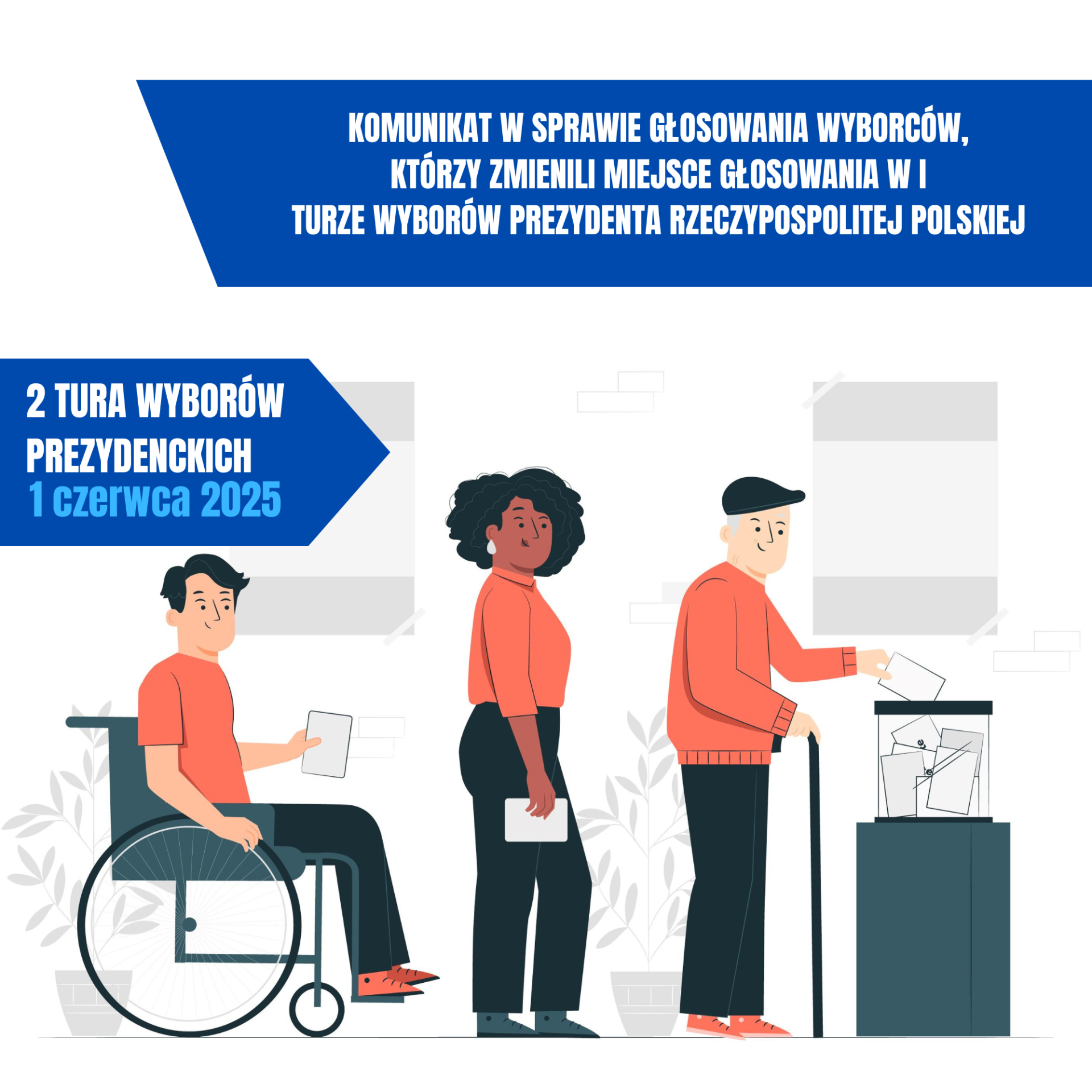 Państwowa Komisja Wyborcza przypomina, że wyborcy, którzy złożyli wniosek o zmianę miejsca głosowania przed I turą, będą ujęci w tym samym spisie wyborców również w II turze wyborów w dniu 1 czerwca 2025 r. Wzięcie udziału w głosowaniu w innym obwodzie w kraju, w tym również w miejscu stałego zamieszkania, będzie możliwe wyłącznie po: