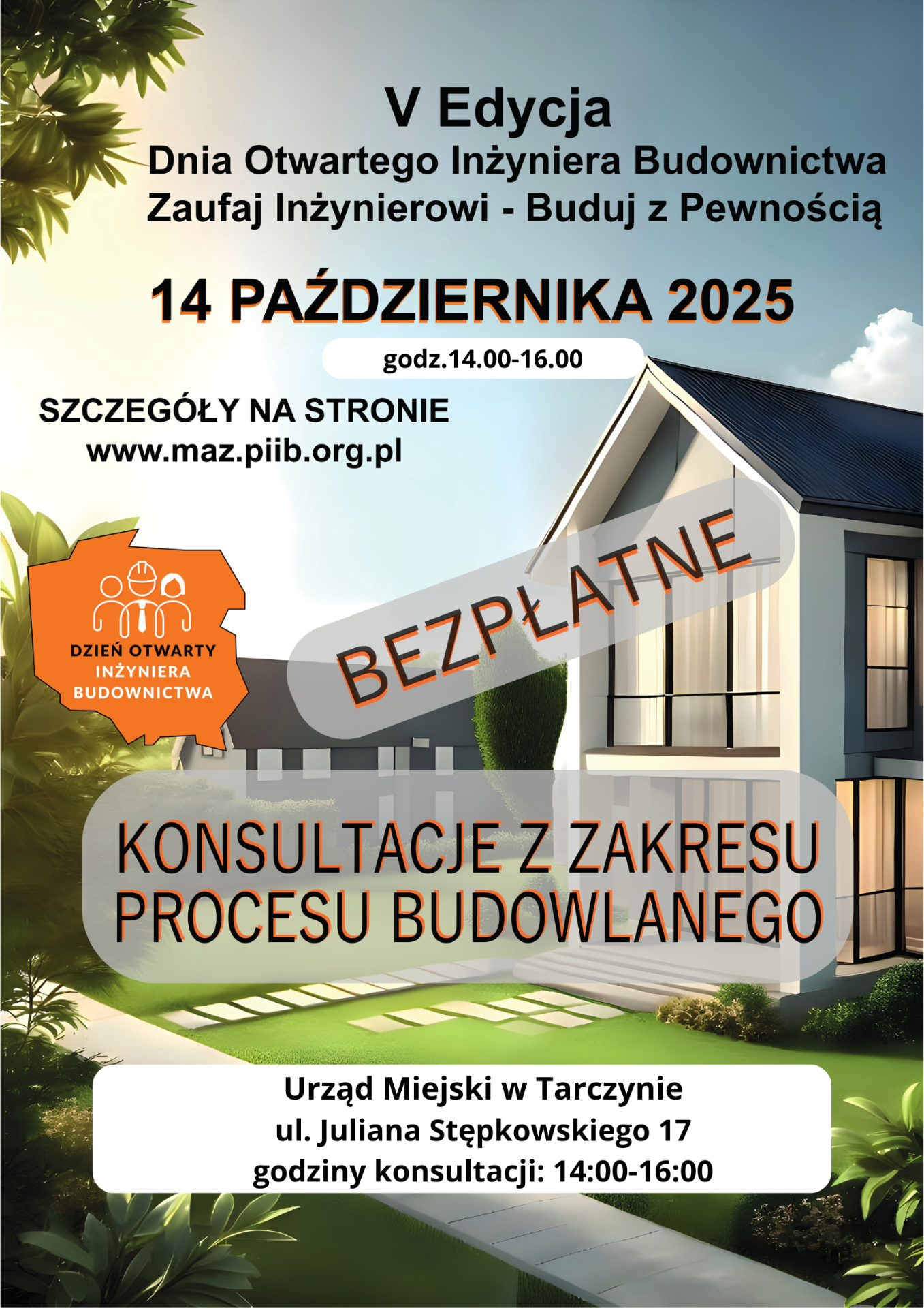W godzinach 14:00–16:00 w głównym holu urzędu, inżynierowie budownictwa będą udzielać bezpłatnych porad wszystkim zainteresowanym.