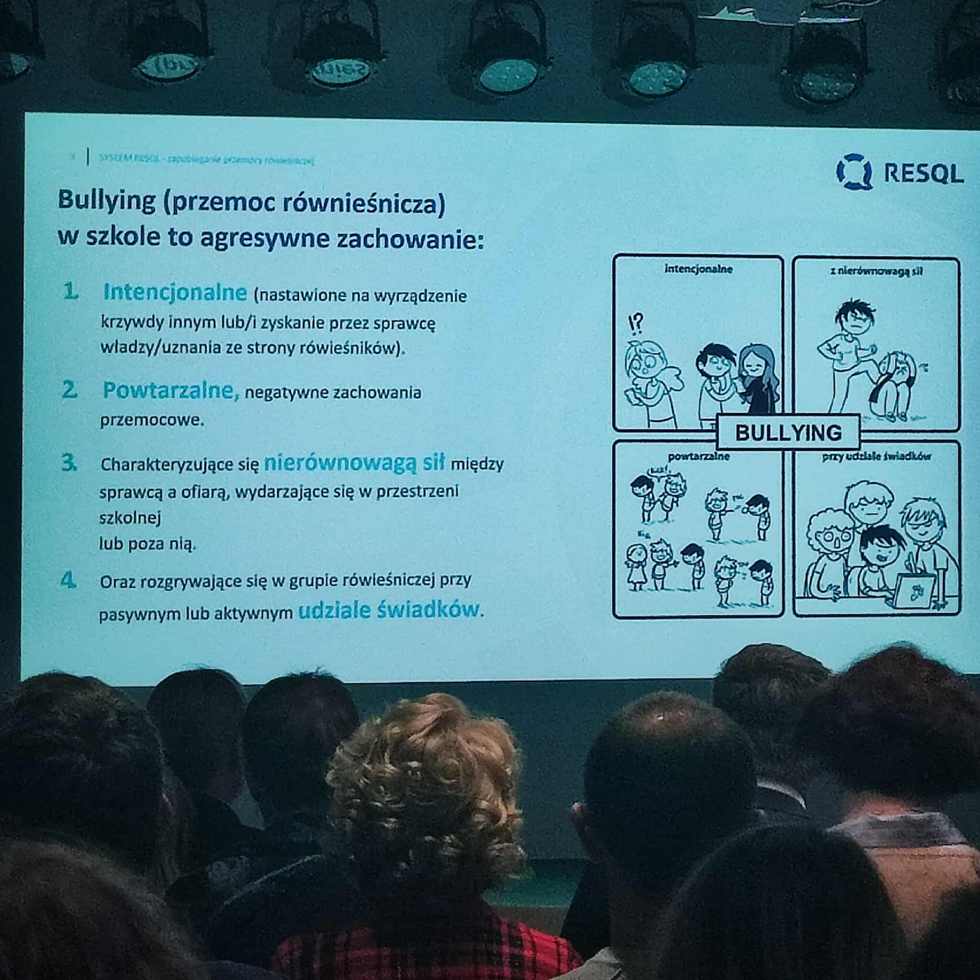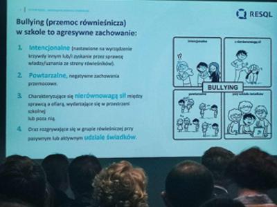 Pierwsza część konferencji poprowadzona przez przedstawicieli Piaseczyńskiej Akademii Rozwoju Obywatelskiego dotyczyła działań profilaktycznych przeprowadzonych skierowanych do uczniów i nauczycieli placówek oświatowych w Powiecie Piaseczyńskim. Zaprezentowano dobre praktyki i ciekawe inicjatywy. Z kolei dr Radosław Kaczan –wykładowca i psycholog-badacz Uniwersytetu SWPS poruszył temat bullyingu oraz przedstawił działanie systemu RESQL, służącego monitorowaniu i zapobieganiu przemocy rówieśniczej w szkołach.