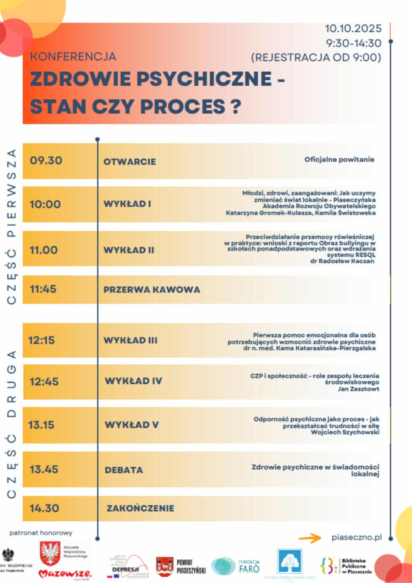 W dniu 10 października 2025 roku w siedzibie Biblioteki Publicznej w Piasecznie odbyła się konferencja "Zdrowie psychiczne - stan czy proces?"