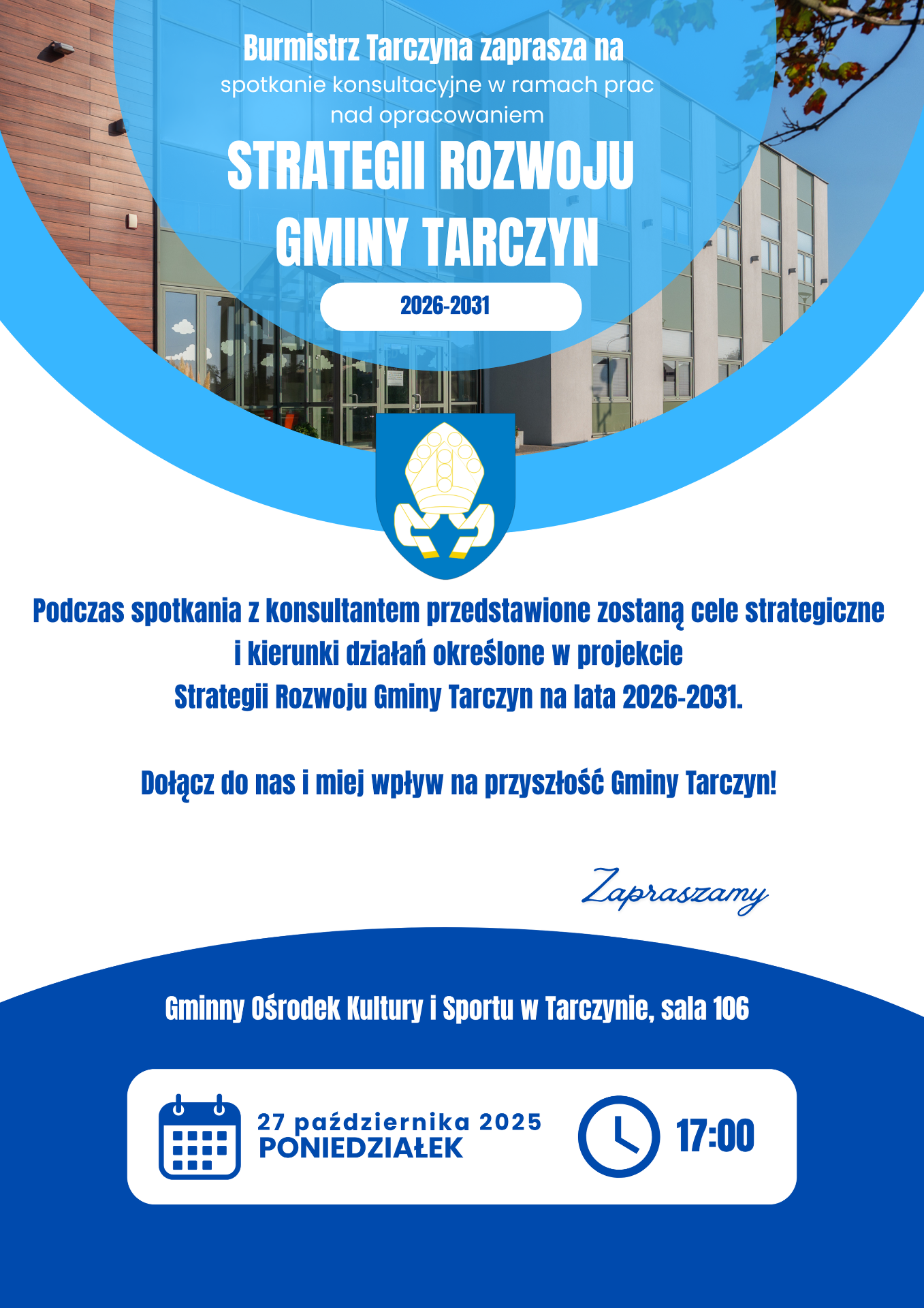 Spotkanie organizowane jest w ramach konsultacji społecznych projektu „Strategii Rozwoju Gminy Tarczyn na lata 2026–2031”, które trwają od 14 października do 17 listopada 2025 r.