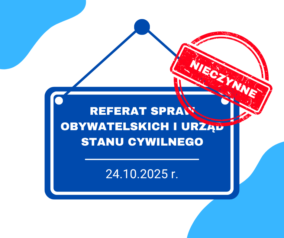 Referat Spraw Obywatelskich oraz Urząd Stanu Cywilnego będą nieczynne w dniu jutrzejszym, piątek 24.10.2025 r.