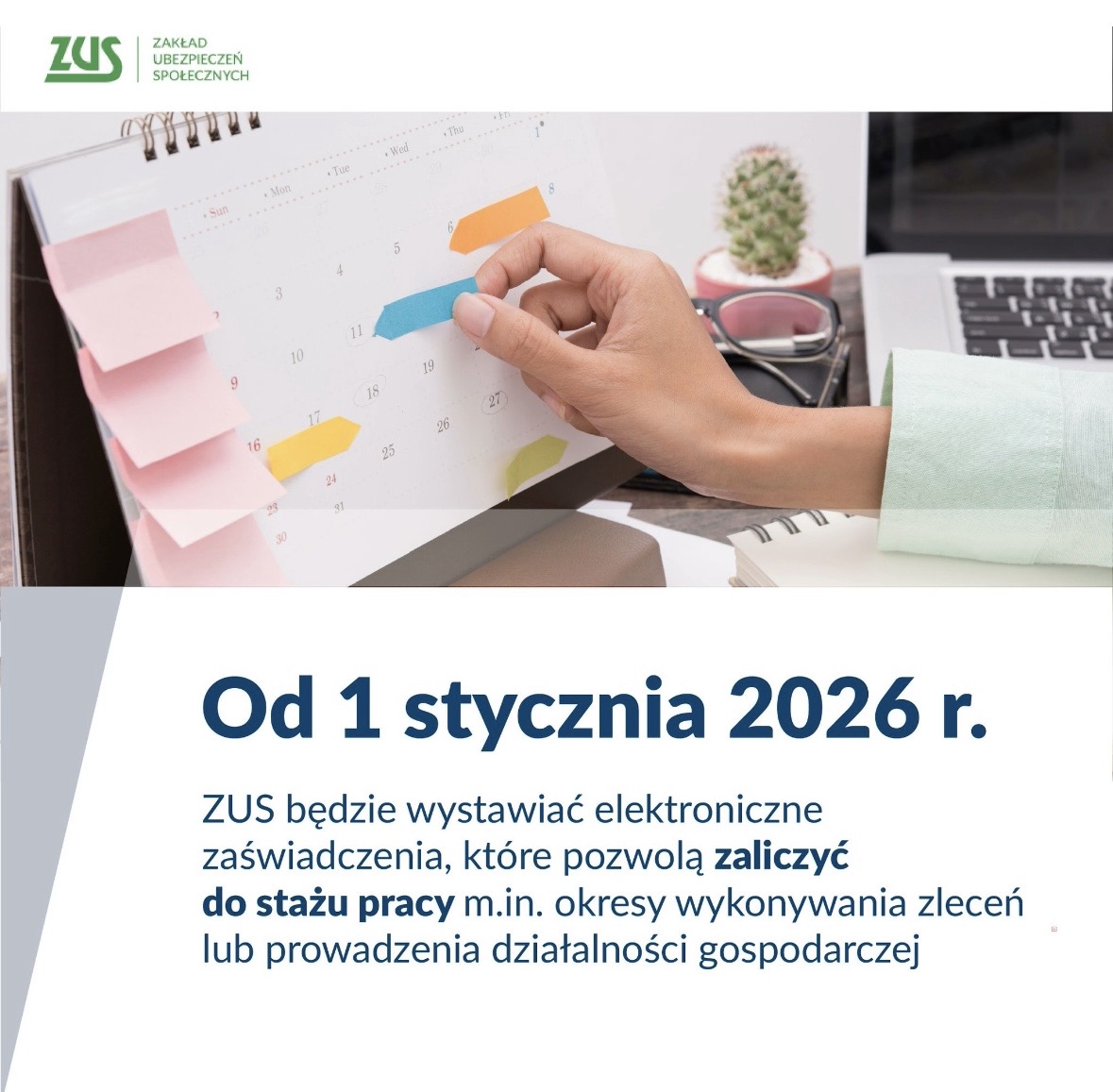 Od 1 stycznia 2026 roku wchodzą w życie zmiany w Kodeksie pracy. Nowe przepisy rozszerzą katalog okresów wliczanych do stażu pracy dla celów nabywania prawa do świadczeń i uprawnień pracowniczych. Obejmą one m.in. umowy zlecenia, prowadzenie działalności gospodarczej czy pracę zarobkową za granicą. Potwierdzeniem tych okresów będą zaświadczenia z ZUS, wydawane od nowego roku na podstawie wniosku składanego w PUE/eZUS.