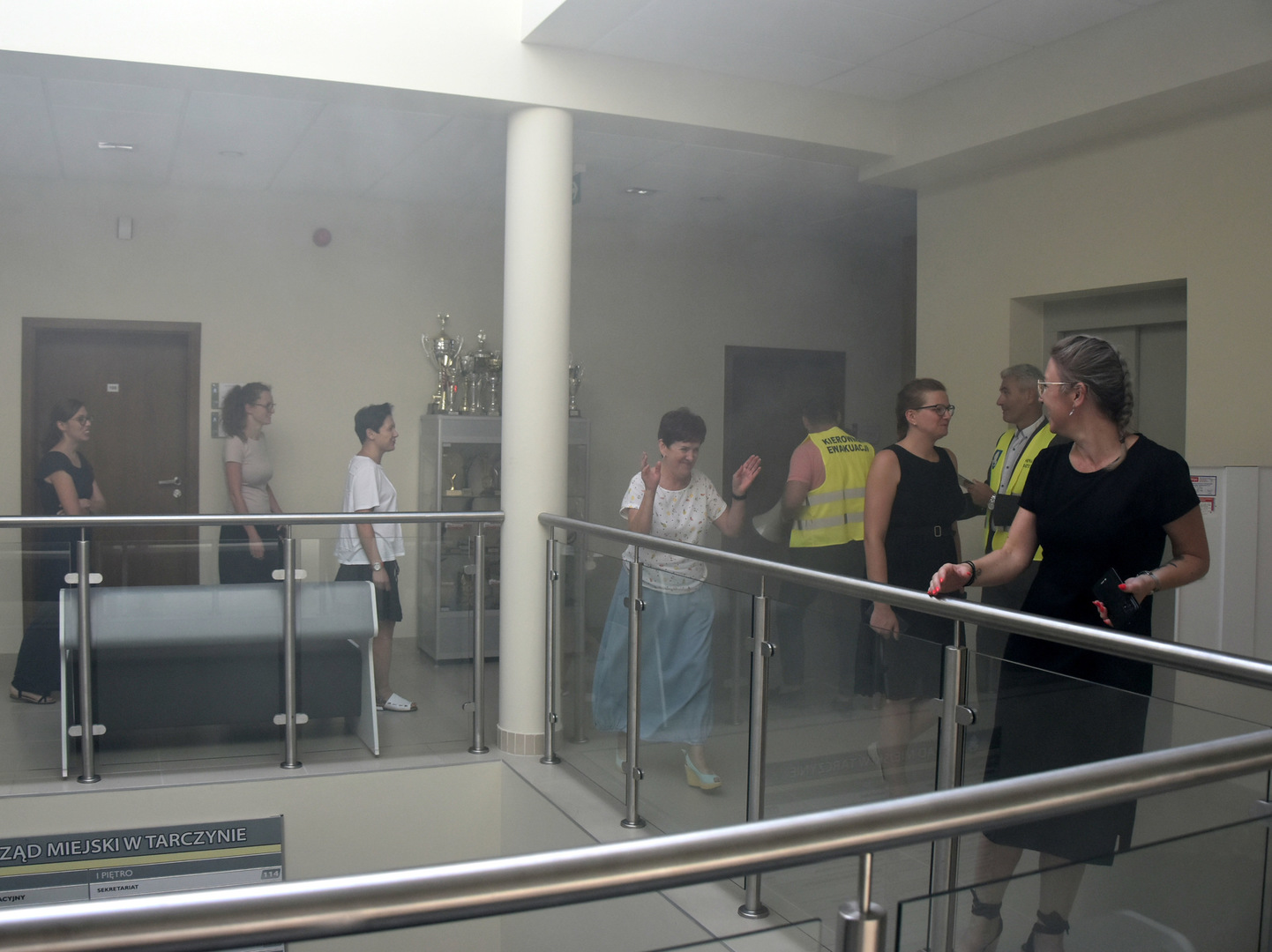 W dniu 18 sierpnia 2022 r. odbyły się ćwiczenia ewakuacyjne dla budynku Urzędu Miasta w Tarczynie ul. Stępkowskiego 17 - realizacja tzw. PSE (Praktyczne Sprawdzenie Ewakuacji).