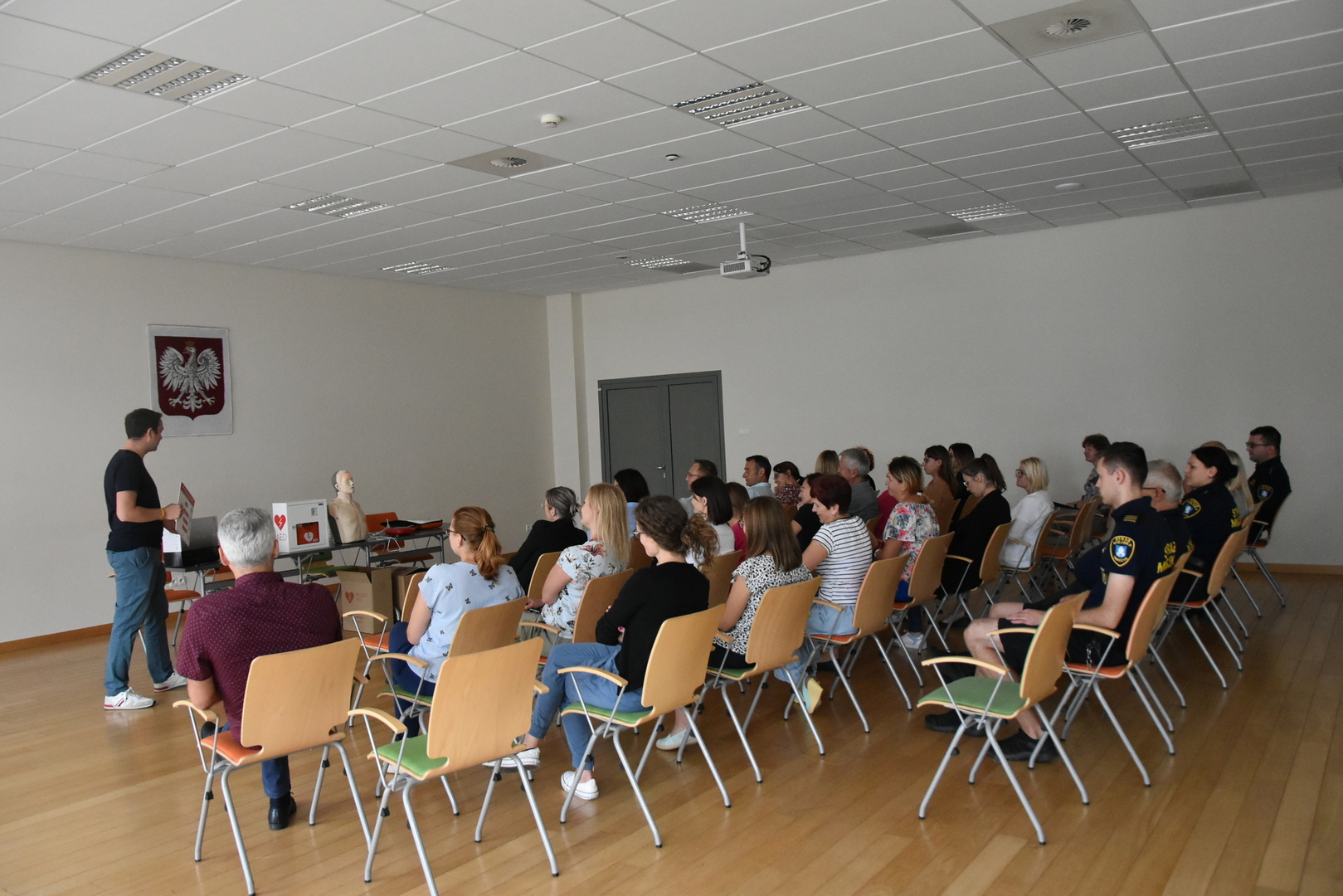 W związku z powyższym, w dniu 30 sierpnia b.r. przeprowadzone zostało szkolenie dla pracowników urzędu z zasad postępowania i użycia defibrylatora AED.