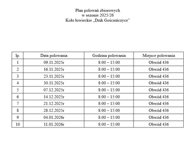 Informacja o planowanych polowaniach koła łowieckiego DZIK Gościeńczyce